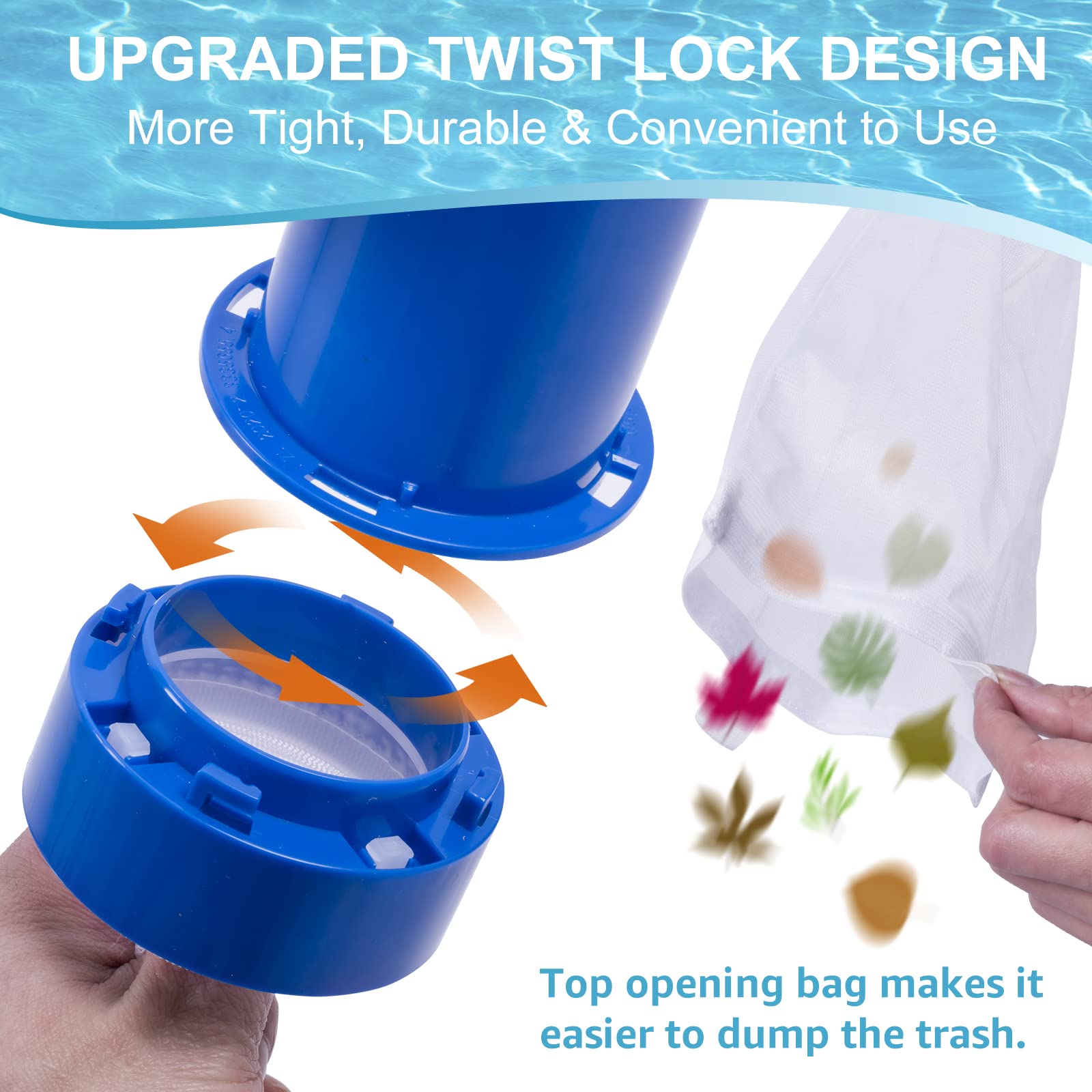 • The product comes with a fine mesh collection bag (for collecting small insects and other tiny debris) and a regular mesh collection bag (for collecting larger debris like leaves), meeting your various cleaning needs.