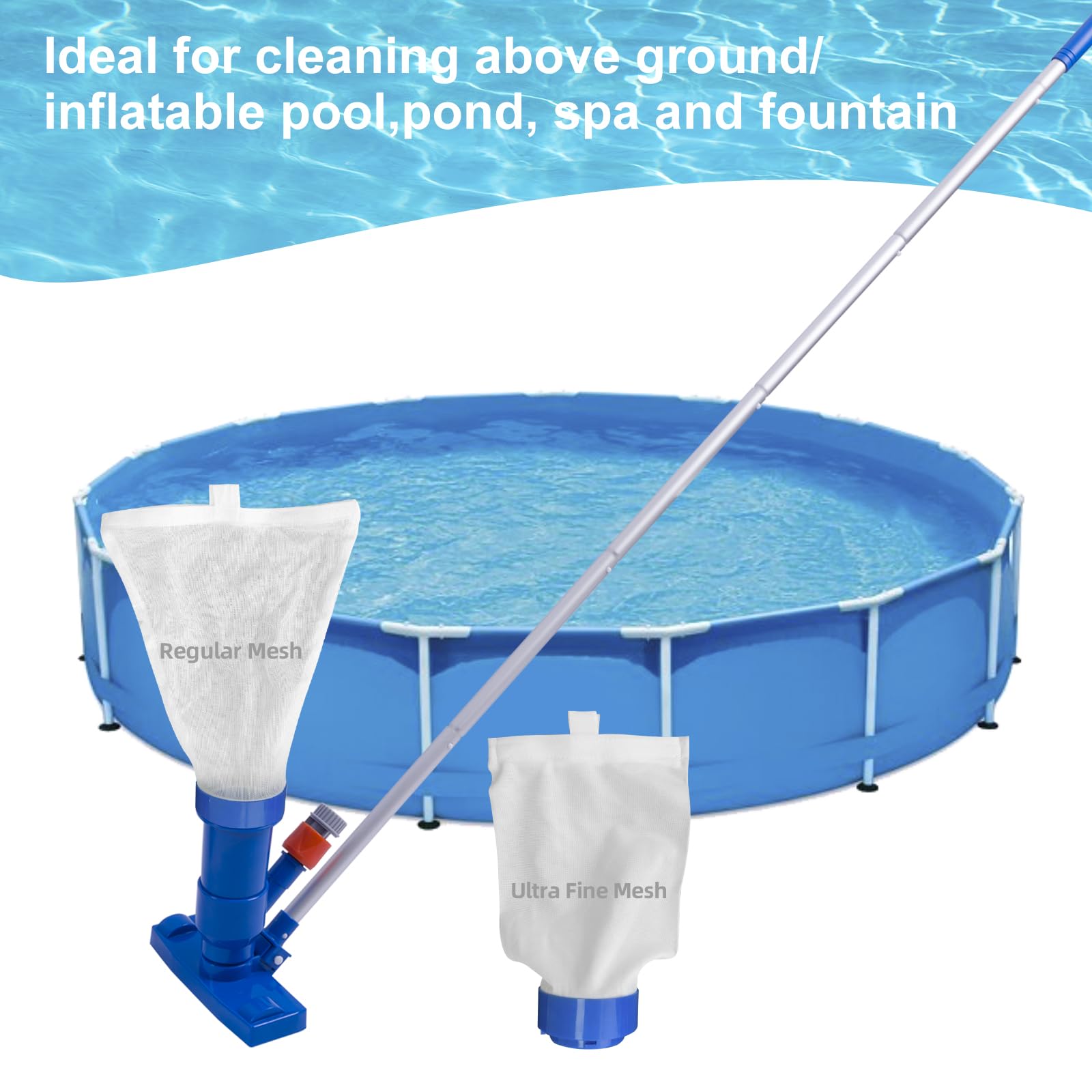 • This is the perfect tool for cleaning above-ground pools, inflatable pools, ponds, spas, lakes, and fountains.