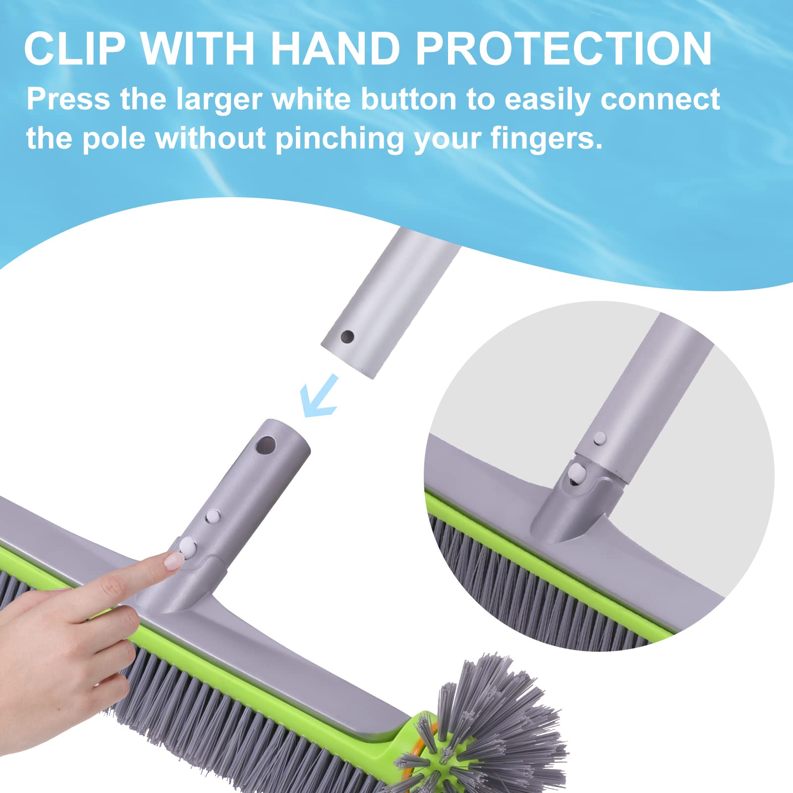- Works with most 1-1/4″ standard pool pole (pole not included).