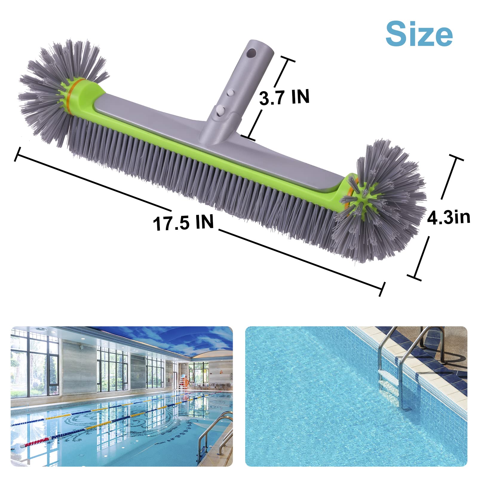 - Hemispherical bristles allow you to get the hard corners without the worry of cutting the pool liner(safe for vinyl liner) 17.5″ extra wide brush will cover larger area and save both your time and effort.